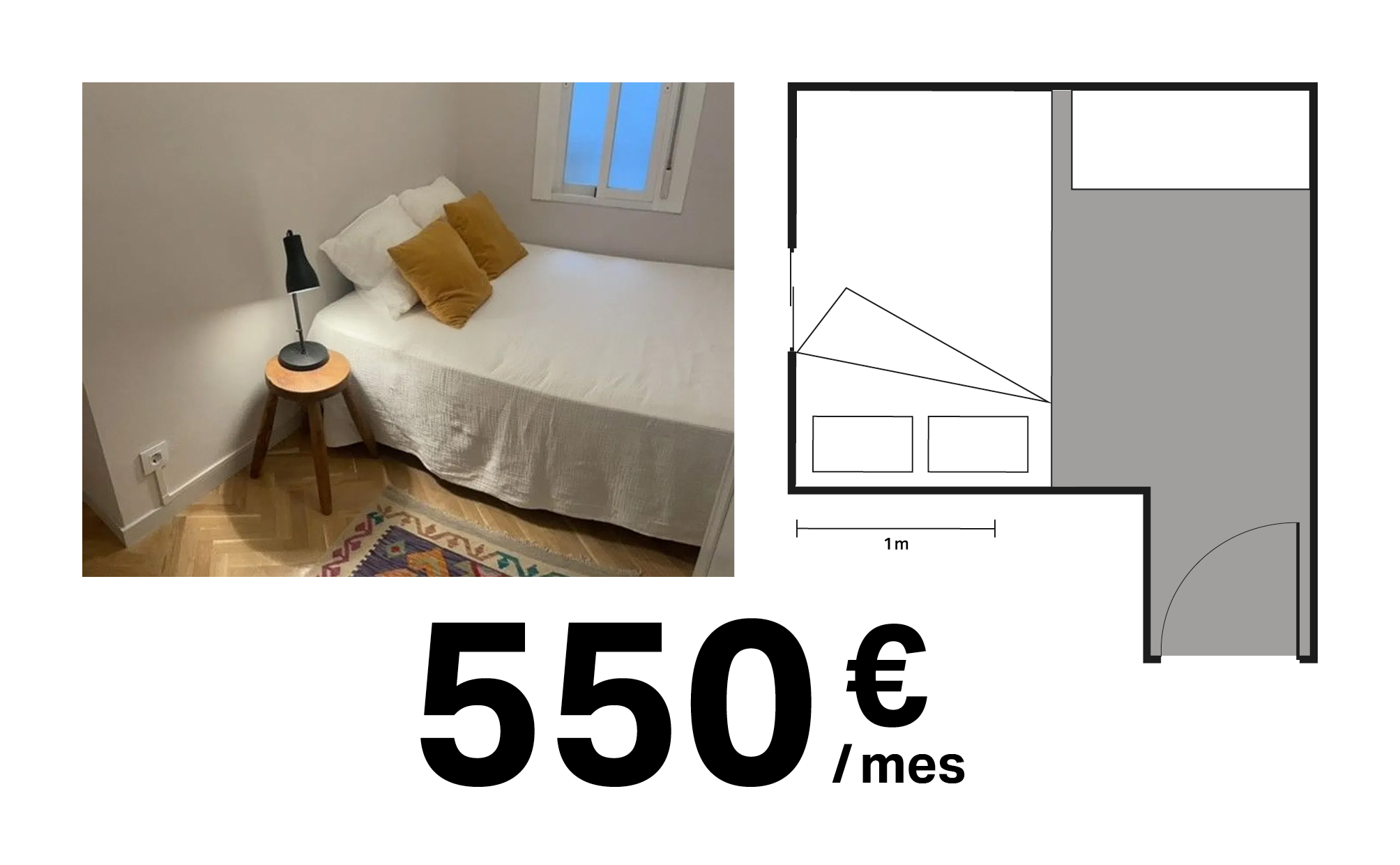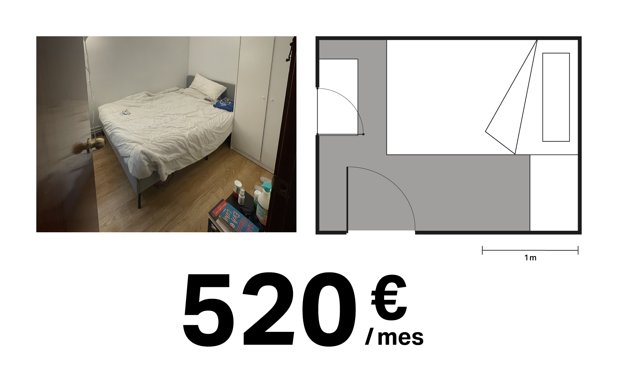 La recerca va començar documentant diverses habitacions de lloguer a Barcelona. Més enllà del preu, la sorpresa va ser la reducció extrema de l'espai lliure, concretament l'espai entre el llit i l'armari. Aquest buit, essencial per viure, s'ha convertit en el protagonista d'aquest projecte.